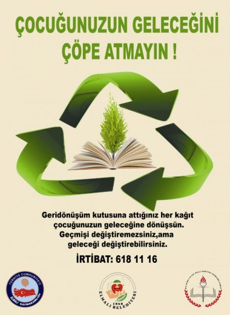 Antalya'nın Elmalı ilçesinde kaymakamlık, belediye ve Milli Eğitim müdürlüğünün iş birliğiyle 'Atık Kağıtları Toplama ve Değerlendirme Projesi' hayata geçirildi.