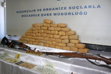 Bir ihbarı değerlendiren polis ekipleri emekli korucubaşı Mehmet Emin İnan'ın Şerefiye Mahallesindeki evine baskın düzenledi. Evde yapılan aramalarda, paketler halinde 28 kilo 357 gram eroin, 1 kaleşnikof marka tüfek ve bu tüfeğe ait 4 şarjör, üzerinde Arapça yazı bulunan mavzer diye tabir edilen 1 uzun namlulu tüfek, 2 tabanca şarjörü ve 22 fişek. çeşitli çap ve markalarda 118 kısa namlulu tabanca fişeği ile 147 uzun namlulu silah fişeği ve çeşitli çap ve markalarda 181 boş mermi kovanı ele geçirildi.