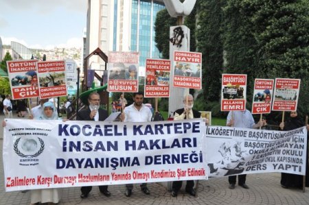 Kocaeli Kartepe İnsan Hakları Dayanışma Derneği, Sabri Yalın Parkı'nda başörtüsü yasağıyla ilgili açıklama yaptı. Açıklama öncesinde protesto gösterisi yapan grup, ‘Başörtüsüne özgürlük’ yazılı pankartlar açtı. EMİRDER adına konuşan Şube Başkanı Akbaş, Hükümete ve YÖK Başkanı Prof. Dr Yusuf Ziya. Özcan'a seslendi.