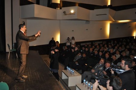 Kişisel gelişim uzmanı Alişan Kapaklıkaya tarafından verilen ‘Yaktım seni stres’ isimli konferansa katılan emniyet mensupları keyifli dakikalar yaşadı. Kapaklıkaya’nın polisler hakkında anlattığı hikayeler katılanları kahkahaya boğdu. Seminerin ilerleyen dakikalarında da polislerin bir olay karşısında stresle başa çıkabilmenin yolları hikâyelerle anlatıldı. Kapaklıkaya, stresten kurtulmanın ve onu pozitif enerjiye çevirmenin yollarını anlatırken stresin eve sokulmadan nasıl dışarıda bırakılacağını ve yaptığımız işi çekilmez bir meslek olmak yerine sevdiğimiz bir iş olmasını başarmanın yollarını anlattı. Ayrıca, çocukların eğitimi konusunda dikkatli hareket edilmesi gerektiğini ve ailenin çocuğun eğitimine sağladığı katkının önemine işaret etti.