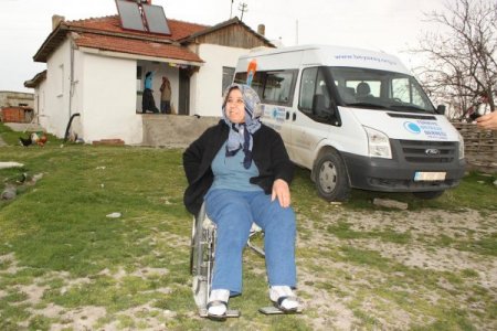 Ankara’nın Polatlı ilçesinde, Hüsniye Eroğlu isimli vatandaş, Türkiye Beyazay Derneği Polatlı Şubesi'nin engelli taşıma aracı ile 6 ay sonra ilk kez evinden dışarı çıktı.