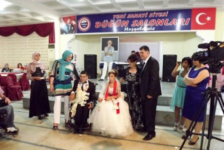 Çorlu Yeni Sanayi Düğün Salonu'nda yapılan engelli gençlerin düğününe aileleri yanı sıra Çorlu Sakatlar Derneği Başkanı Suat Yaşa ve engelli arkadaşları ile çok sayıda davetli katıldı. Bir TV kanalındaki evlilik programı vasıtasıyla tanışan Çorlulu Yalçın Şenalp (23) ile Mersinli Menekşe Şenalp (27) evlenmeye karar verdi. Çorlu'da düğünleri yapılan engelli aşıklar, pasta keserek birbirine pasta yedirdi. Takı merasimi sonrasında ise engelli genç çift, davetliler ile birlikte gönüllerince eğlendi.