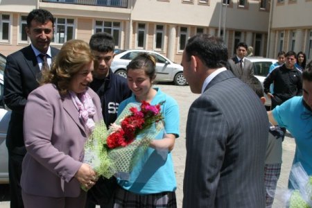 Beraberinde İl Milli Eğitim Müdürü Fikret Eteker, Okul Müdürü Abdullah Acar ve öğretmenlerle birlikte görme, işitme ve sosyal ve iletişim sorunu olan çocukların bulunduğu sınıfları gezen Gülsüm Çolak, görme engelli sınıftaki öğrencilerle yakından ilgilenerek, eğitimleri hakkında sınıf öğretmeninden bilgi aldı. Görme engelli Yakup Mamiş adlı öğrencinin İstiklal Marşı'nı okumasını ise alkışladı. Daha sonra bayan Çolak, öğrencilerle yemek yedi.
