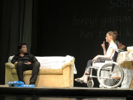 Engelli olarak yaşamaya çalışan insanların verdikleri mücadelenin ve yaşadıkları güçlüklerin anlatılacağı oyunda gerçek hayattan kesitler bulunacak. ‘Yoksa Siz Engel-siz Misiniz’ isimli oyunun prova çalışmaları sürüyor. Türkiye Omurilik Felçlileri Derneği Başkanı Ramazan Baş’ın yazdığı oyunu, Tiyatro Atölyesi’nden Aytekin Özen yönetecek. 11’i profesyonel, 6’sı engelli 17 kişinin rol alacağı oyun 29 Ağustos tarihinde Yunus Emre Kültür Merkezi’nde sahne alacak.