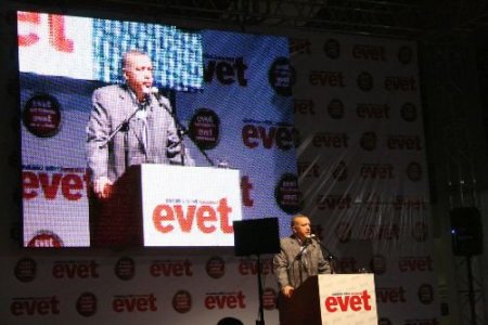 12 Eylül'deki halk oylamasının güçlü ekonomi, güçlü Türkiye için önem arzettiğini anlatan Başbakan Erdoğan, "12 Eylül'de kaybeden bir veya bir kaç siyasi parti olmayacak. 12 Eylül'de kazanan da AK Parti olmayacak. Herhangi bir kesim, zümre olmayacak. 12 Eylül'de Türkiye'nin tamamı kazanacak. Yolumuza devam etmek istiyoruz. Prangalardan kurtulmuş olarak yolumuza devam etmek istiyoruz. 13 Eylül'den sonra Türkiye istikrarlı, sağlam bir zemine kavuşacak. 8 yıldır ülkeyi tanıştırdığımız sihirli kavram olan istikrar ve güvenin kaybolmasını istemiyoruz. Bununla büyümeye devam edeceğiz. İstikrarı olmayan bir ülkeye kimse yatırım yapmaz. Güveni olmayan bir ülkeye kimse yatırım yapmaz. İleri bir demokrasi olmayan bir ülkeye kimse yatırım yapmaz. Çünkü demokrasiyle ekonomi atbaşıdır. Eğer demokrasi ileriye taşıyorsanız ekonomi de patlayacaktır. Son 8 yılda ekonomide sıçrama yaptık. Milli gelir bire üç katladı. Daha da katlamaya devam edecek. Türkiye'nin güven zemini daha da pekişecektir. Şeffaf bir devlet anlayışıyıyla bu süreci devam ettireceğiz" dedi.