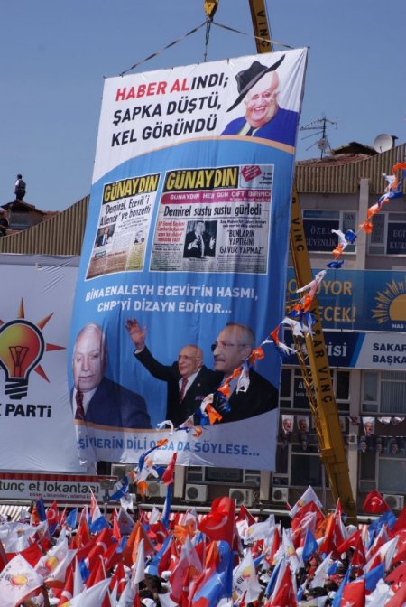 Başbakan Erdoğan, partisinin Kent Meydanı’nda düzenlediği mitingte halka hitap etti. Türkiye’de inancın, düşüncenin yasaklanmasını çok iyi bildiklerini dile getiren Erdoğan, yasakların belgelerini de halka gösterdi. Erdoğan şöyle konuştu: “CHP’nin camileri nasıl kapattığının belgeleri burada. Benim Sakaryalı kardeşlerim bu CHP’ye mi oy verecek? Ne diyor beyefendi, biz eski CHP değil, yeni CHP’yiz diyor. Senin, biz bu kelime oyunlarına mı uyacağız. Senin geçmişin kirli.” diye konuştu.