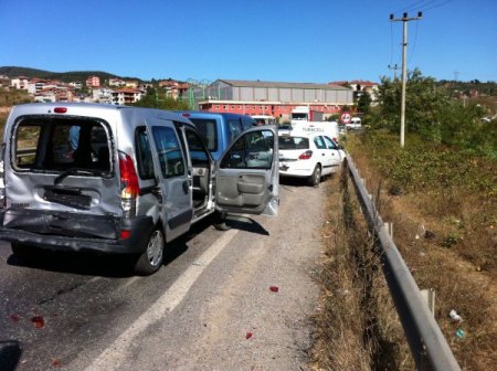 İlk kaza Yeşiltepe Kepez mevkiinde saat 15.45 sularında meydana geldi. Yeşiltepe istikametine giden ve plakası alınamayan bir aracın aniden yolda durması sonucu 67 TR 190, 67 FA 309, 67 LZ 463 ve 07 ZP 040 plakalı otomobiller birbirine girdi. Maddi hasarın oluştuğu kazada yaralanan olmadı. Trafik kaza tutanaklarını hazırlayan sürücüler daha sonra araçlarını yoldan kaldırdı. Kaza yapan otomobillerde bulunan bazı sürücü yakınlarının ise korktukları gözlendi.