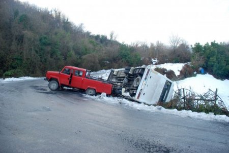 Kaza, sabah saatlerinde Ereğli-Kandilli yolu üzerinde meydana geldi. Edinilen bilgilere göre beldesi yolunda Hamit Akyüz’ün (28) kullandığı 67 M 8531 plakalı özel halk midibüsü, Balı Mahallesi çıkışında yolda oluşan buz nedeniyle kayarak tarlaya devrildi.