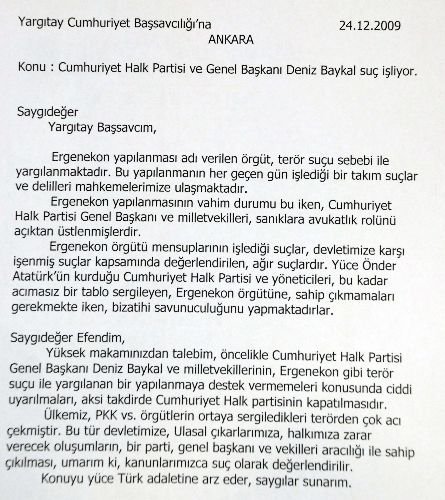 "CHP artık ulu önder Atatürk'ün kurduğu Cumhuriyet Halk Partisi değil." diyen Yalçınel, "CHP, terör suçlarından her tarafı kanayan Ergenekon terör örgütüne direk, alenî destek vermektedir. Bu parti artık bu yapısı ile, ulu önder Atatürk'ün kurduğu Cumhuriyet Halk Partisi değildir. Ergenekon terör örgütü, yurt dışındaki düşmanlarımızın, aynı PKK gibi desteklediği, taraftar bulduğu ve Türkiye Cumhuriyetini yok etme, zayıf düşürme operasyonlarının bir parçasıdır. CHP milletvekilleri, devlete karşı işlenen suçlarda, taraf olamazlar. Bu davranış, Türkiye Büyük Millet meclisi çatısı altında olan insanların yapamayacağı ve bu işin sonunda vekillikten düşürülmesi gereken bir durumdur. CHP ve Deniz Baykal, ya bu hatadan dönmeli, ya da CHP kapatılmalıdır." diye konuştu.
