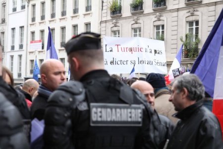 Fransa Senatosu, sözde Ermeni Soykırımı'nı kabul etmeyenlerin cezalandırılmasına ilişkin yasa teklifini görüştüğü sıralarda Ermeni asıllı vatandaşlar da Senato önlerinde gösteri düzenledi. CİHAN