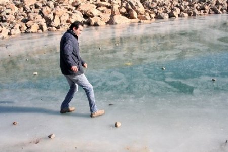 Erzincan’a 23 kilometre uzaklıkta bulunan Erzincan Baraj Gölü, soğuk hava sebebiyle dondu. İlginç görüntülerin ortaya çıktığı baraj gölünde, buz kalınlığı yer yer 10 santimetreye ulaştı.