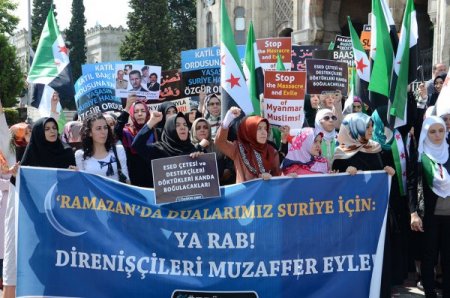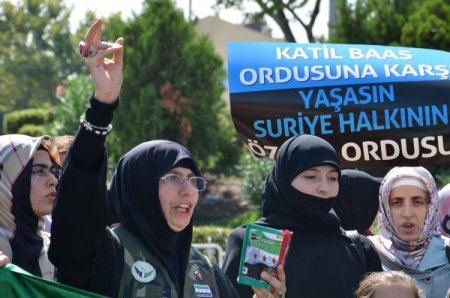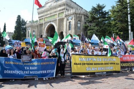 Özgür Düşünce Ve Eğitim Hakları Derneği (Özgürder) üyesi bir grup, Beyazıt Meydanı'nda eylem yaparak Esed’i protesto etti. Eyleme, Suriye'den gelen Humuslu direnişçi Ebu Salah da katıldı.
