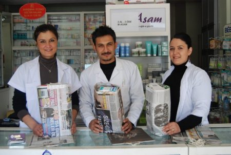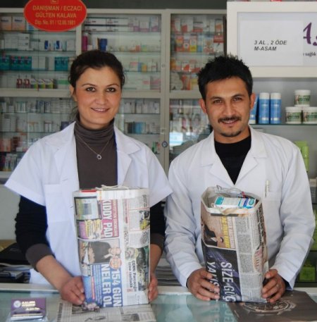 Artan geri dönüşüm duyarlılığına Eskişehir’de bir eczane farklı bir boyut getirdi. Ellerindeki eski gazeteleri değerlendirmek isteyen Eczacı Gülten Kalava ve çalışanları, gazeteden ilaç poşetleri yaptı. Böylelikle, hem eski gazeteler değerlendi hem de geri dönüşüme bir katkı sağlandı. İki yıl içerisinde 200 kilodan fazla eski gazete kullanan eczane, bu sayede onbinlerce ilaç poşeti üretti. Halen ellerinde 4 binden fazla poşet bulunan eczanenin müşterileri uygulanan bu yöntemden oldukça memnun.