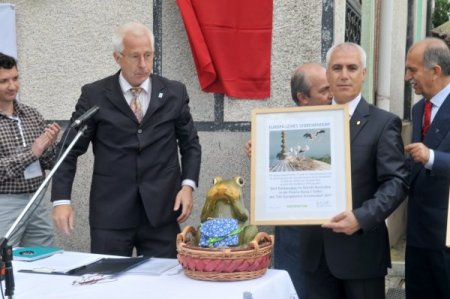 Konuşmaların ardından, Avrupa Leylek Köyleri Ağı Üyelik Belgesi Euronatur yönetim kurulu üyesi Dr. Martin Schenneider Yacoby tarafından Vali Şahabettin Harput ve Başkan Mustafa Bozbey’e verildi. Törende ayrıca, Avrupa Leylek Köyleri maskotu olan Victor, gelecek yıl toplantıya ev sahipliği yapacak olan Bulgaristan’ın Belozem bölgesi yetkililerine verildi.