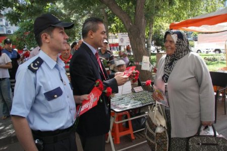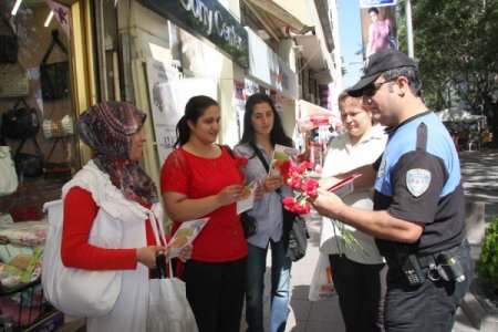 Eskişehir’de Emniyet Müdürlüğü kontör ve para dolandırıcılığına karşı vatandaşları karanfil ve broşür dağıtarak uyardı.