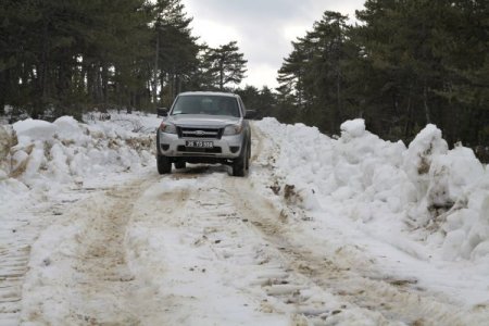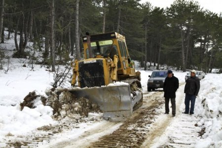 Eskişehir’in şehir merkezinde eriyen karlar yerini yavaş yavaş çiçeklere bırakırken, ormanlık alanlarda karla mücadele hala devam ediyor. Mihalıççık ilçesi Eğriova mevkiinde kardan kapalı olan orman yolları dozer ile açılıyor. Yer yer bir metreye ulaşan kar kümelerinin geçit vermediği orman içlerinde bulunan emval depolarına ulaşım güçlükle sağlanıyor.