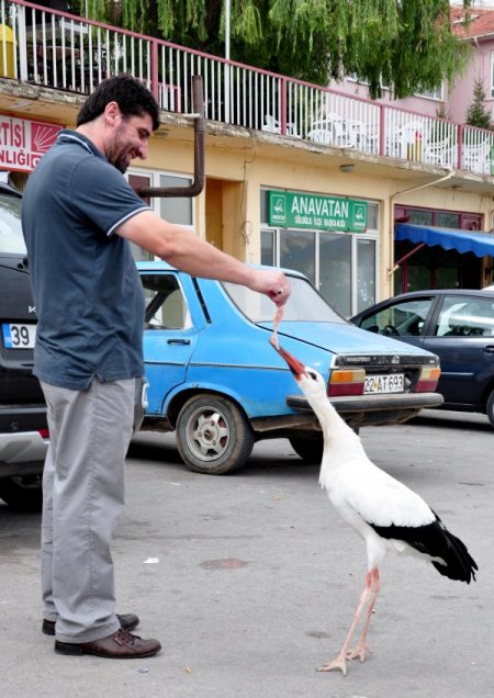 Leylek, gördüğü ilgi sebebiyle günün belirli saatlerinde ilçeye gelerek karnını doyurduktan sonra ayrılıyor.