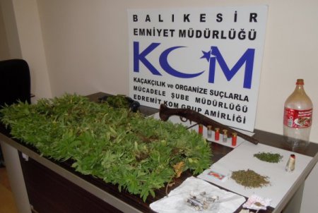 Balıkesir il merkezi, Edremit Körfezi ve Çanakkale genelinde 7 aydır iz süren Balıkesir İl Emniyet Müdürlüğü Kaçakçılık ve Organize Suçlarla Mücadele (KOM) Şube Müdürlüğü ile Edremit KOM Amirliği ekipleri, operasyon için harekete geçti. Operasyonda A.S. (43), A.A. (23) ve H.B. (26), R.K. (33), U.E.G. (21), H.B. (32), E.Ş. (42), G.Ş. (32), E.S. (40), B.S. (19), S.S. (49), M.T. (46), S.Ö. (24), Y.K. (28), M.G. (24), M.K. (32) ve M.R. (25) gözaltına alındı. A.S., A.A. ve H.B., çıkarıldıkları mahkemece tutuklanarak cezaevine gönderildi. Aralarında kadınların da bulunduğu 14 zanlını sorgusu devam ediyor. Sivil polis minibüsleriyle Edremit Adliyesi’ne götürülen zanlılardan bazıları, basın mensuplarına saldırmak istedi. Operasyonda toplam 652 gr. esrar maddesi, bin 81 kök dişi Hint keneviri, 1 adet esrar içiminde kullanılan düzenek, 1 adet ruhsatsız av tüfeği, 5 adet fişek ve 1 adet 7,65 milimetre çaplı ruhsatsız tabanca ele geçirildi!
