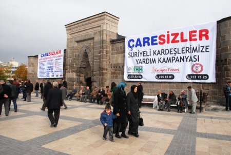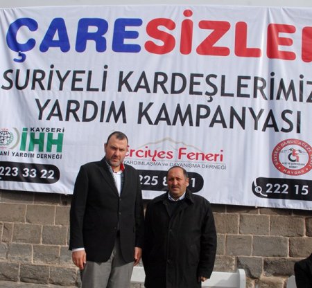 İHH Kayseri Şubesi Başkan Yardımcısı Ömer Yağmur, İHH, Erciyes Feneri ve Kayseri Darülaceze Vakfı olarak Suriye halkına yönelik yardım kampanyası başlattıklarını belirtti. Yağmur, evde kullanılmayan eşyaların bile toplanması adına bu kampanyanın önemli olduğunu belirterek, şu bilgiyi verdi: “Şu an kamplarda yaşayan Suriye halkının ihtiyaçları kış ayları ile birlikte arttı. Bu insanlar evlerini terk ederken sadece yanlarına bir bavul alabildiler. Şu an kışlık giyecek ihtiyaçları fazla. Çadırda yaşayan insanların özellikle soğuktan korunmak için battaniyeye ihtiyaçları var. O nedenle evlerinde fazla battaniye kullanan insanlarımızı bunun bir tanesini bizimle paylaşabilir. Kadın ve çocuklar için kışlık giyecekler. İç çamaşır talepleri var. Yine maddi anlamda yapılabilecek yardımlar için banka hesapları oluşturuldu. Ayrıca gıda ihtiyaçlarının karşılanması adına yine insanlarımız bu tür yardımlarda bulunabilirler.”