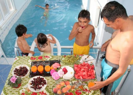Peker, evin içerisine böyle bir havuz yaptırdığı için ilgi çekiyor. Havuzda keyif yapanlar daha sonra da havuz başında hazırlanan meyve ve içecekleri içerek serinliklerini bir kat daha arttırıyor. Evi 175 bin TL’ye yaptırdığını ve arsası ile birlikte 215 bin TL’ye mal olduğunu belirten Peker, evi satarak üç katlı bir ev yaptırıp en üst katına da havuz yaptırmayı planlıyor. Eş, dost ve akraba çocuklarının yaz aylarında evlerinden eksik olmadığını belirten Yılmaz Peker, “Eş dost özellikle de akrabaların çocukları son iki yıldır evi sıkça ziyaret ediyor. Misafir salonundan girilen havuz, çocukların yoğun ilgisini çekiyor. Havuzun kalorifer petekleri var ama su soğuk, suyu da ısıttığımızda hiçbir eksik kalmayacak.” dedi.