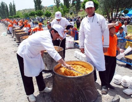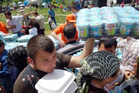 Yapılan duanın ardından pilav dağıtımına başlandı. Dağıtım sırasında bir grup vatandaşın daha çok pilav ve ayran almak istemesi ise bazı kazanların başında izdihama neden oldu. Aşçıların uyarısı üzerine izdiham engellenirken, bu sırada tabaklara konan pilavlar yere döküldü.