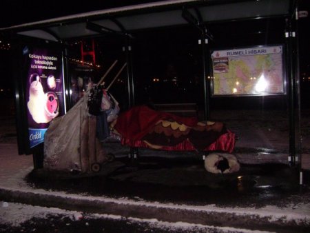 İstanbul’da dün akşam saatlerinden itibaren etkili olan kar yağışı ile soğuk hava ulaşımdaki aksamaların yanı sıra evsiz vatandaşları da olumsuz etkiledi. Evsiz vatandaşlar, buz gibi havada donma tehlikesi geçirdi. Kendilerini kar ve soğuktan korumak isteyen evsizlerin sığınağı ise otobüs durakları oldu. Neredeyse her otobüs durağında bir evsiz sabahladı. Bazı evsiz vatandaşlar ise ATM kulübelerini tercih ederek soğuktan korunmaya çalıştı.