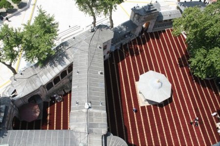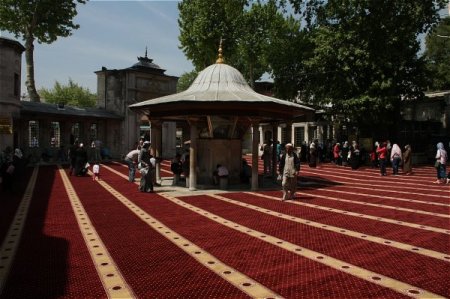 Eyüp Belediyesi, Eyüp Sultan Camii'nin türbe kısmı ve iç avlusunu kırmızı halılarla kapladı. Belediye, Cuma ve Pazar günleri serilecek halılar için özel ekip oluşturdu. Geçtiğimiz yıl da tarihi caminin avlusu seccade büyüklüğünde beyaz mermerlerle kaplanmıştı.