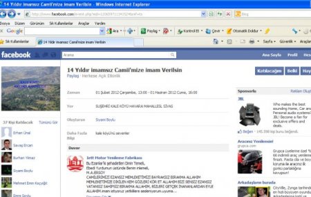 Sivas’ta bir vatandaş, 14 yıldır imamı olmayan köyünün camisine imam atanması için sosyal paylaşım sitesi facebook’ta grup oluşturdu. Atama yapılması için ilgili kuruluşlara yazılı ve sözlü müracaatlarını yaptıklarını belirten Siyami Boylu, “Sesimizi duyurabilmek amacıyla facebook’ta böyle bir grup oluşturduk.” dedi.