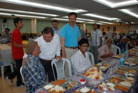 Fatsa Belediyesi ile Umut Eğitim Derneği’nin her yıl birlikte organize ettikleri iftar çadırları, Fatsa Kültür Sarayı'nın faaliyete geçmesi ile klimalı salonlara taşındı. Salonda her gün yaklaşık 700 kişiye iftar yemeği veriliyor. İftar sofrasını ziyaret eden Fatsa Belediye Başkanı Hüseyin Anlayan, AK Parti İlçe Başkanı Fatih Sözen ile belediye meclis üyeleri yemek dağıttı ve halkla sohbet etti.