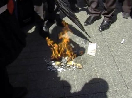 Basın açıklamasının ardından eylemciler, yanlarında getirdikleri faturaları yaktı.