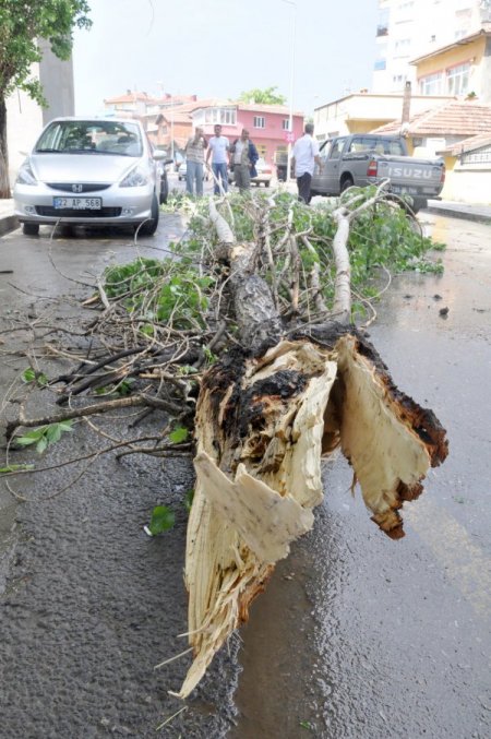 Sıcak bir güne başlayan şehirde fırtına saat 15.00 sıralarında yüzünü gösterdi. Edirne’nin semalarında beliren bulutlar bazı alanlarda yağmur ve doluyu beraberinde getirdi. Dolu ve yağmura rüzgar da eklendi. Yaklaşık yarım saat etkili olan rüzgara dayanamayan şehrin birçok noktasında ağaçlardan kopan koca dallar yollara düştü. 25 Kasım Stadyumu civarında düşen bir ağacın park halindeki araçların arasındaki boşluğa düşmesi ve düşme anında kimsenin yoldan geçmemesi muhtemel bir faciayı önledi.