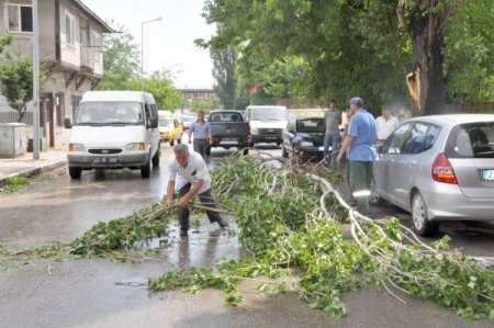 Edirne’de aniden başlayan fırtına şehir merkezindeki çok sayıda ağacın dallarının kopmasına neden oldu.