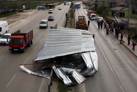 Bursa'da, hızı zaman zaman 60 kilometreyi bulan şiddetli rüzgarın uçurduğu çatı yoldan geçen bir kişinin üzerine düştü. Ağır yaralanan vatandaş, hastaneye kaldırıldı.