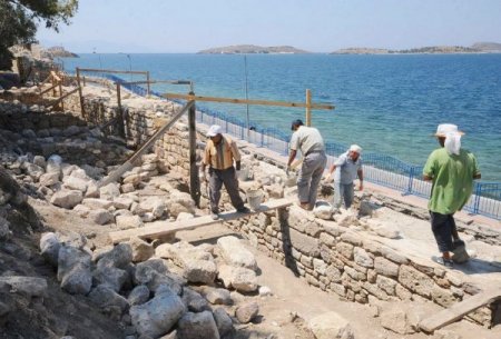Foça’daki kazıları yerinde inceleyen İzmir Büyükşehir Belediye Başkanı Aziz Kocaoğlu, Foça Kazı Başkanı Prof. Dr. Ömer Özyiğit ve Belediye Başkanı Gökhan Demirağ’dan çalışmalar hakkında bilgi aldı.