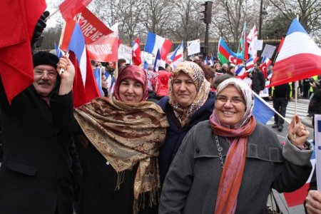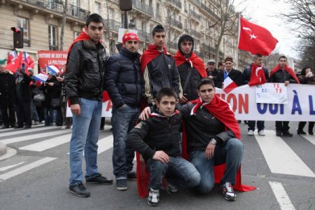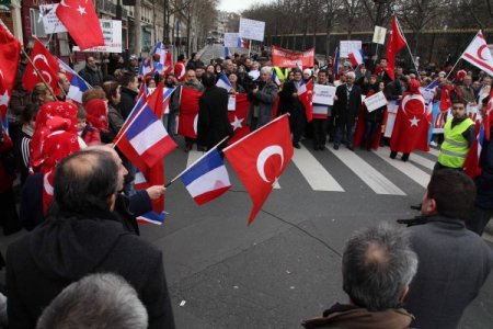 Fransa'da sözde Ermeni soykırımı iddialarının reddini suç sayan yasa tasarısını protesto eden Türkler, tasarının oylanacağı Senato önünde gün boyu gösteri düzenledi.