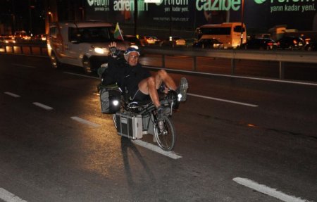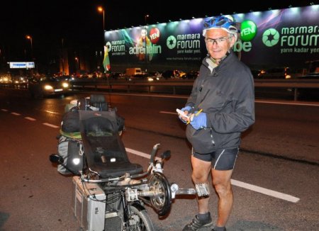 Mesleği öğretmenlik olan Alain, emekliliğin ardından zamanını değerlendirmek adına alışılmış bisikletin aksine kullanıcının bel kısmını rahat ettiren özel bisikletiyle yabancı ülkeleri gezmeye başladı. Yaklaşık bir ay önce yola çıkan Alain Arnavutluk, Romanya ve Bulgaristan’ı geçtikten sonra iki gün önce Edirne’den Türkiye’ye giriş yaptı. Dün akşam saatlerinde İstanbul’a ulaşan Alain yoğun bir trafikle karşılaştı. Trafik kurallarını bilmeden E-5 Karayolu’nda ilerleyen Alain sürücülere zor anlar yaşattı.