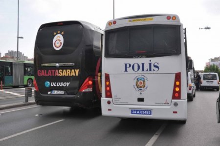 Galatasaraylı futbolcuları taşıyan otobüs, Fenerbahçeli taraftarların oluşturduğu trafik nedeniyle ilerlemekte zorlandı.