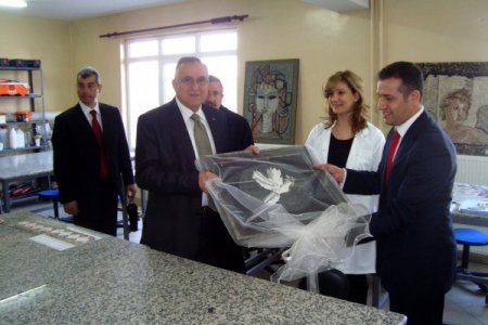 Mozaik sınıfını gezen Başkan Güzelbey’e kurs hocası ve kursiyerler tarafından yapılan mozaik tablo hediye edildi.