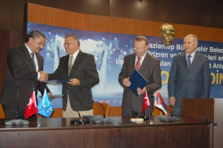 Gaziantep Büyükşehir Belediyesi, Kosova'nın Prizen ve Sırbistan'ın Tutin şehirleriyle 'İşbirliği Niyet Anlaşması’ imzaladı. İmza töreni, Gaziantep Büyükşehir Belediye Başkanı Asım Güzelbey, Prizen Belediye Başkan Yardımcısı Orhan Lopar ve Tutin Belediye Başkanı Bajro Gegıc arasında imzalandı.