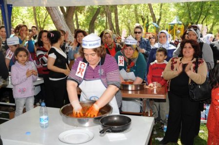 Gaziantep’te Şahinbey Belediyesi Hıdrellez Bahar Bayramı etkinlikleri kapsamında ilginç bir yarışmaya imza atarak yağlı köfte yoğurma yarışması düzenledi.