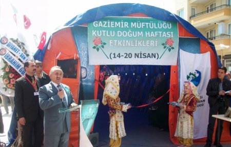 Müftülük, Kutlu Doğum Haftası etkinlikleri çerçevesinde ‘hat ve ebru sanatları’ sergisi gerçekleştirdi. Sergilerin açılışı münasebetiyle Gaziemir Sevgi Yolu üzerinde kurulan Kutlu Doğum çadırı önünde bir tören düzenlendi. Açılışta kısa bir konuşma yapan Gaziemir Kaymakamı Şerafettin Tuğ, ilçe müftüsü ve personeline hizmetlerinden dolayı teşekkür etti.
