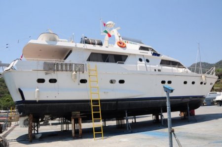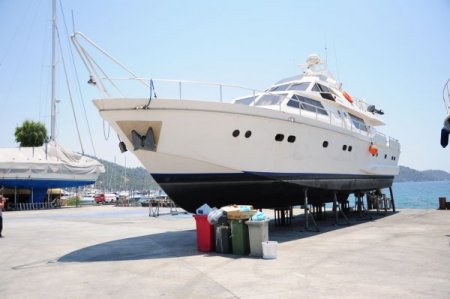 İsrail ablukasına karşı oluşturulan Özgürlük Filosu'na katılmak üzere Fethiye’nin Göcek beldesinde demirli bulunduğu sırada sabotaja uğradığı iddia edilen İrlanda bandıralı MV Saoirse gemisinin bakımı sürüyor..