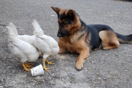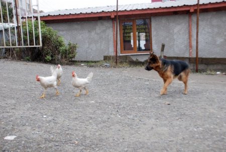Zonguldak’ın Ereğli ilçesinde 1 yaşındaki Alman cinsi kurt köpeği, gece sahibinin işyerini, gündüz ise tavukları koruyor.