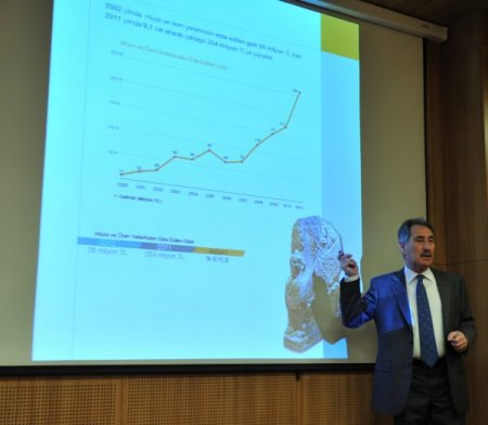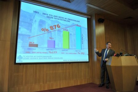 Kültür ve Turizm Bakanı Ertuğrul Günay, kültür ve turizmde 2011 istatistiklerini basın mensupları ile paylaştı. Bakan Günay, geçen yıl müze ve örenyeri ziyaretçi sayısının 28 milyon 462 bin 893’e yükseldiğini belirterek, “Artış oranı, geçen seneye göre yüzde 13.” dedi. Günay, müze ve örenyeri gelirlerinde de artış yaşandığını belirterek, “170 milyon TL olan gelirler, bu sene 253 milyon 892 bin 756 TL’ye çıktı.” diye konuştu.