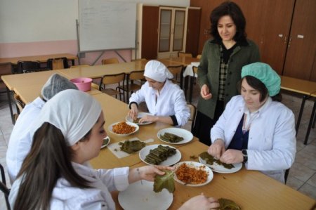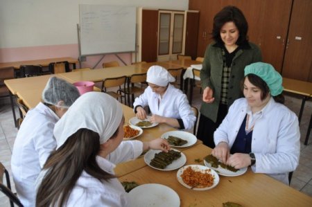 Yozgat Kız Meslek Lisesi yiyecek ve içecek bölümü öğrencileri, mesleğe dışarıdan verilen siparişleri karşılayarak hazırlanıyor. Yozgat Kız Meslek Lisesi Müdürü Fatma Bacanlı, uygulamalı eğitimde öğrencilerin dışarıdan verilen yemek siparişlerini hazırlayarak mesleklerinde pratik yaptıklarını, bu sayede okullarını bitirdiklerinde kalfalık ve işyeri açma belgesine de sahip olduklarını söyledi. Okulda 7 değişik bölümde öğrencileri bulunduğunu belirten Bacanlı, “Yiyecek içecek bölümünde 32 öğrencimiz Türk mutfağı uygulamalarında haftalık 19 saat çalışıyor. Burada mantı, sarma, börek, pasta ve kurabiye çeşitlerini burada sipariş üzerine yapıyorlar. Dışarıya göre fiyatlarımız çok uygun, o yüzden gelen müşteriler ne istiyorlar ise malzemelerini getirerek öğrencilerimize yaptırıyor. En çok da diğer resmi ve özel kurumlardan sipariş geliyor. Ayrıca son sınıf 15 öğrencilerimiz de yine merkezde özel ve resmi kurumlarda sigortalı olarak stajını yapıyor.” dedi. Tekstil bölümünde öğrenciler tarafından hazırlanan ürünleri de okulun salonunda açılan sergide satışa sunulduğunu ifade eden Bacanlı, "Okulumuzda tekstil bölümünde kurs gören öğrencilerimizin yaptıkları gömlekler ve diğer ürünler okulumuz salonunda açılan sergide satışa sunuluyor. Yine dışarıdan da oldukça yoğun sipariş alıyoruz. Öğrencilerimiz devlet kurumlarımızda ve özel sektörlerde de stajını yapıyor. Buradan öğrencilerimiz meslek sahibi olarak mezun oluyor. Hem iş bulması kolaylaşıyor, hem de kendi işini kurma imkanına sahip oluyor.” diye konuştu. CİHAN