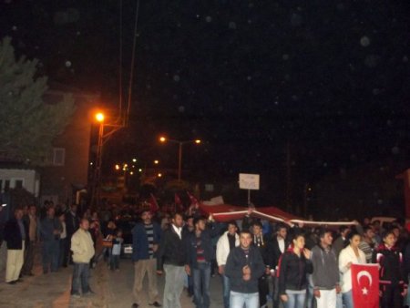 Askerlik Şubesi önünde bir süre bekleyen kalabalık grup, kendilerinin de askere alınması isteğinde bulundu ve 24 askerimizi şehit eden terör örgütü aleyhine sloganlar atarak askerlere destek verdi. Yediden yetmişe tüm ilçe halkının katıldığı protesto yürüyüşü, şehitler anısına bir dakikalık saygı duruşu ve İstiklal Marşı'nın okunmasının ardından sona erdi. CİHAN