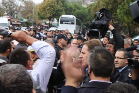 Tepki için toplanan yaklaşık 150 kişi, İstiklal Marşı okuduktan sonra sloganlar atarak toplanmaya başladı. Olaya müdahale eden polis kalabalığın dağılmasını sağladı. Güvenlik güçleri, konser alanını çembere alarak tedbir aldı.