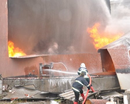 Dolum tesisinde yapılan hurda kesimi sırasında çıkan yangına Giresun Belediyesi İtfaiye Müdürlüğü ekiplerince kısa sürede müdahale edildi.