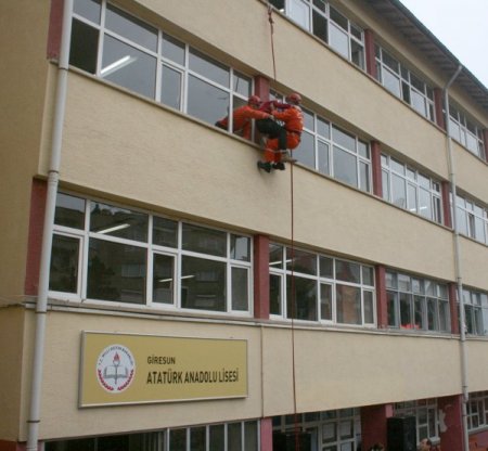 Giresun'da, 28 Şubat Sivil Savunma Günü dolayısıyla Atatürk Anadolu Lisesi'nde deprem ve yangın tatbikatı yapıldı.