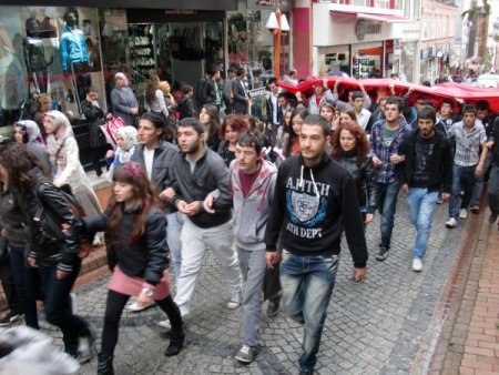 Debboy mevkiinde toplanan büyük çoğunluğunu gençlerin oluşturduğu onlarca kişi, açtıkları Türk bayrakları ile Gazi Caddesi güzergâhı üzerinden Atapark'a doğru yürüyüşe geçti. Yürüyüş sırasında, bölücü terör örgütü PKK’ya tepki gösteren grup, 'Kahrolsun PKK', 'Şehitler ölmez, vatan bölünmez', 'Askere kalkan eller kırılsın' şeklinde sloganlar attı. Yürüyüş yapan gruba cadde üzerinde bulunan vatandaşlar da alkışlarla destek verdi.